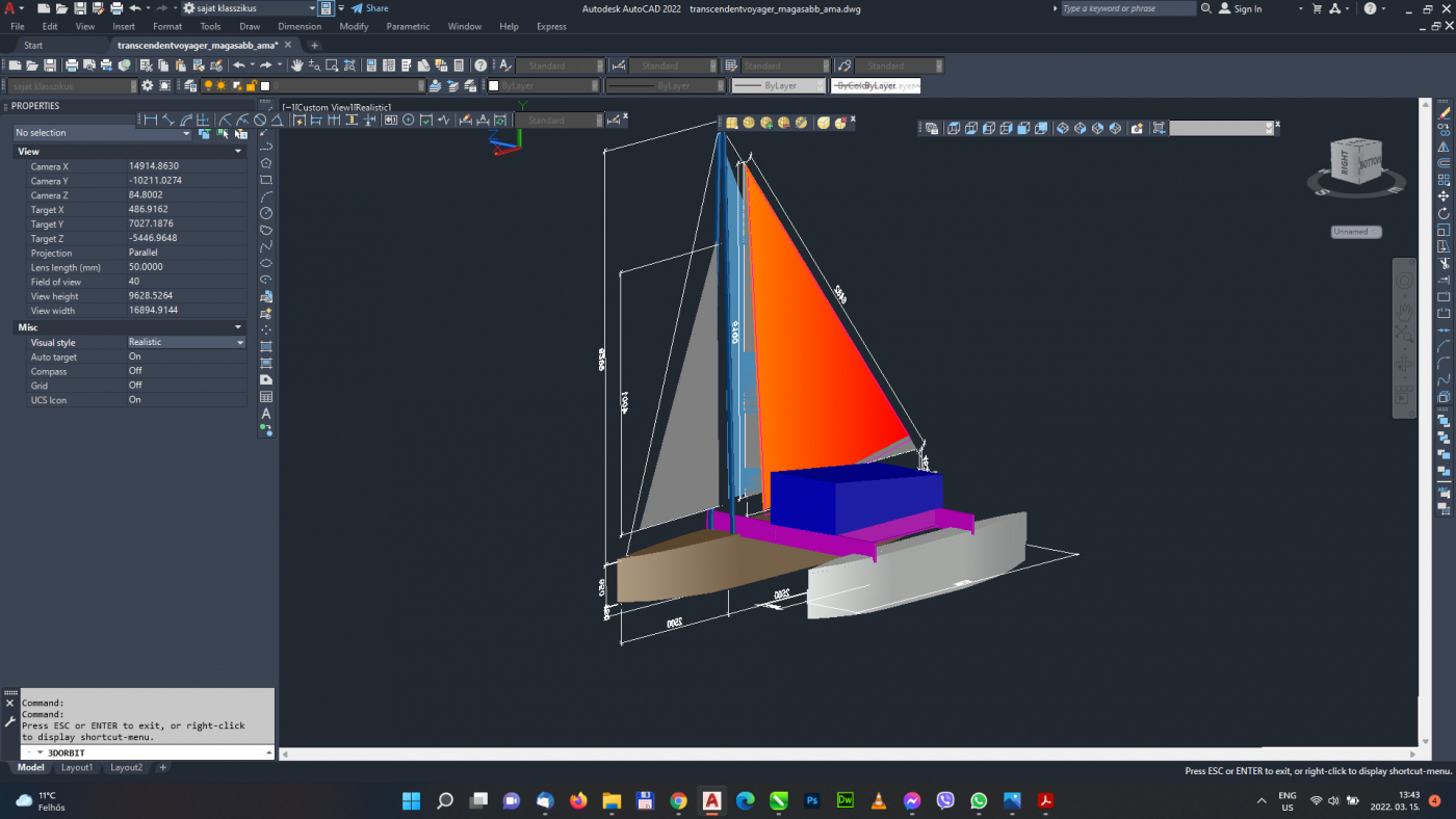 1, Nagyobb, az árbócig érő vitorla illetve hátra egy további kisebb. A tervezett új vitorlákkal javulni fognak a menettulajdonságok, kevésbé lesz függő a száliránytól, illetve gyenge szélben is haladni fog :)
